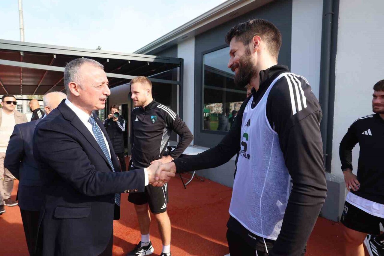 Kocaeli Büyükşehir Belediye Başkanı Tahir Büyükakın, Kocaelispor’un antrenmanını ziyaret etti ve futbolculara baklava ikram etti.