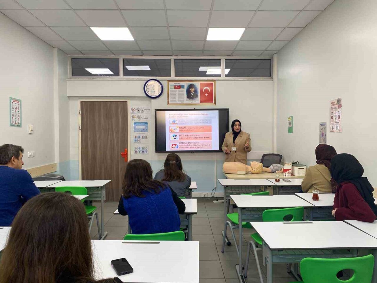 Sağlık ve Sosyal Hizmetler Dairesi Başkanlığı Sağlık İşleri Şube Müdürlüğü’ne bağlı hemşireler tarafından verilen sertifikalı eğitimlerde; “temel yaşam desteği”, “tam tıkanmalar” (solunumun tamamen durması-heimlich manevrası), “yaralanmalar”, “hayvan ısırmaları”, “kırık-çıkık-burkulma”, “sıcak çarpması”, “kanamalar”, “ilk yardım”, “kalp krizinde ilk yardım”, “zehirlenmeler” ve “taşıma teknikleri” gibi konular uygulamalı olarak anlatıldı. Eğitimin sonunda İl Sağlık Müdürlüğü tarafından yapılan sınavda başarılı olan katılımcılara 3 yıl geçerliliği olan “İlk Yardımcı Sertifikası” ve “İlk Yardımcı Kimlik Kartı” verildi.