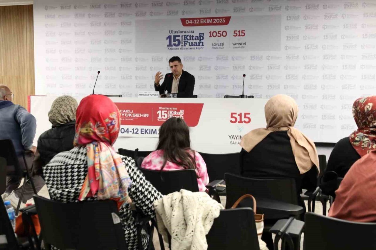 Uluslararası 15. Kocaeli Kitap Fuarı, her yaştan okuyucunun ilgisini çekiyor. Selim Sırrı Paşa Salonu’nda düzenlenen söyleşilerde, yazar ve ilahiyatçı Abdullah Yuyucu “Duanız olmasa, nasıl dua edelim” ve Halit Ertuğrul “Aile ve gençlik eğitimi” konularında katılımcılara seslendi. Yuyucu, Kur’an-ı Kerim’den bazı ayetlerle, “İnsanın bu dünyaya gönderilme nedeni, Allah’ı tanımak ve ona inanarak ibadet etmektir” ifadelerinde bulundu.