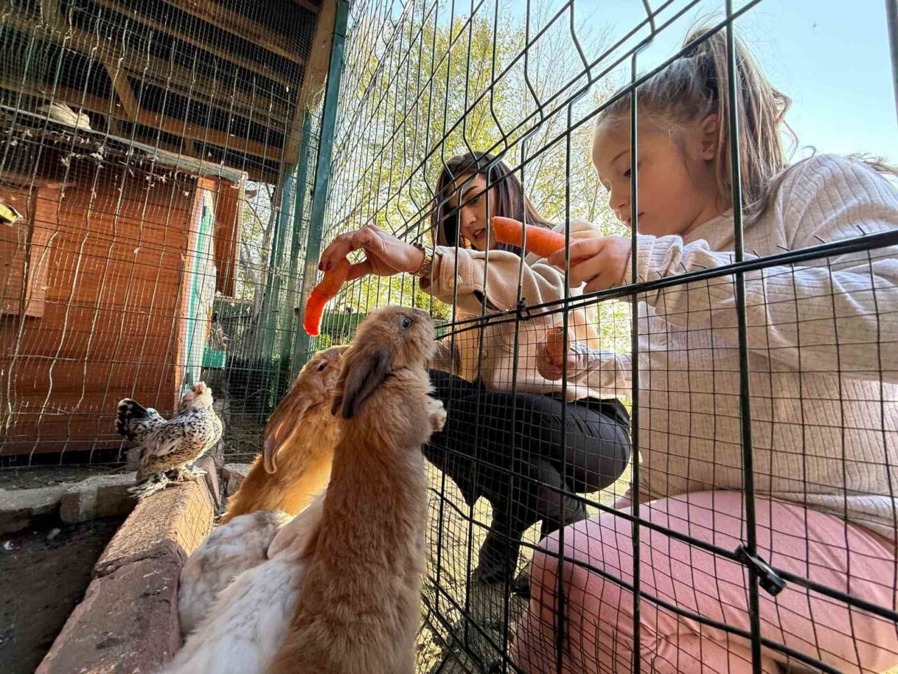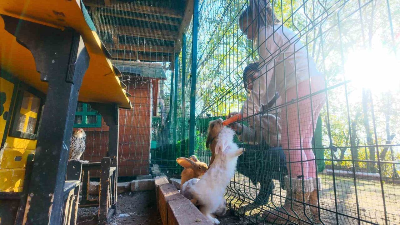 Merkezde bulunan tavşanların, çocukların elinden havuç yeme anları, görenlerin yüzlerinde tebessüm oluşturuyor. Havuç görünce dayanamayan tavşanlar, çocukların elinden beslenirken en tatlı hallerini sergiliyor. Keçiler özellikle ağaç yapraklarına karşı dayanamazken, tavuklar mısır ve buğday gibi yiyecekleri tercih ediyor. Merkezde eğitim gören çocuklarla hayvanların bir araya gelmesi, renkli görüntüler ortaya çıkarıyor.