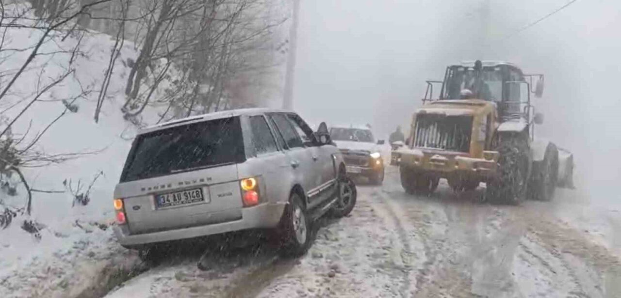 Kocaeli’nin yüksek kesimlerinde yoğun kar yağışı etkisini sürdürürken, yol açma ve tuzlama çalışmaları devam ediyor. Bu çalışmalar kapsamında ekipler, yolda kalan araçlara da müdahale ediyor.