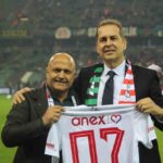 Daha sonra Kocaelispor Başkanı Durul, Antalyaspor Başkanı Perçin’e, özel olarak hazırlanmış takımı simgeleyen forma hediye ederek bu dostluk ortamını perçinledi. Ardından, dostluk mesajları sahanın etrafında gezerek tribünlere selam durarak devam etti.