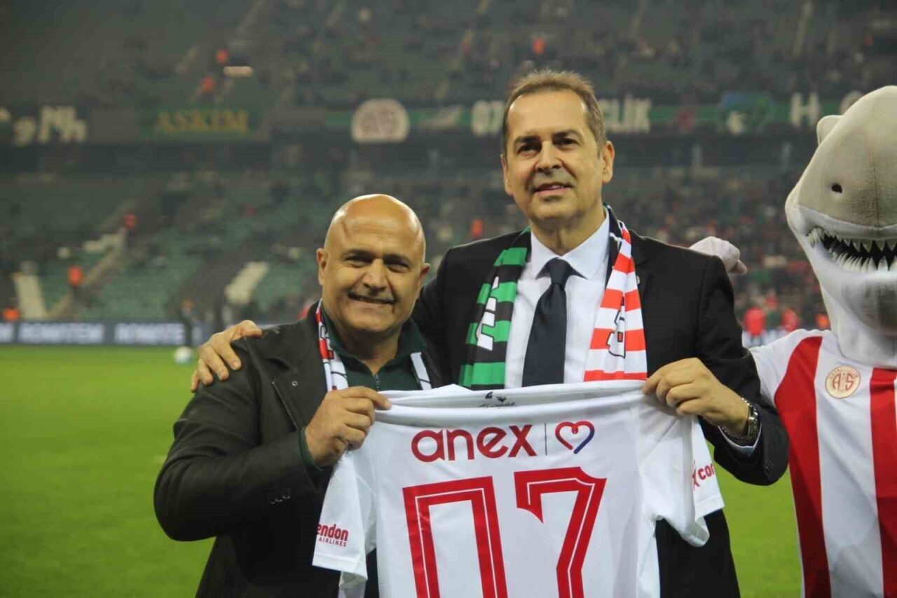 Daha sonra Kocaelispor Başkanı Durul, Antalyaspor Başkanı Perçin’e, özel olarak hazırlanmış takımı simgeleyen forma hediye ederek bu dostluk ortamını perçinledi. Ardından, dostluk mesajları sahanın etrafında gezerek tribünlere selam durarak devam etti.