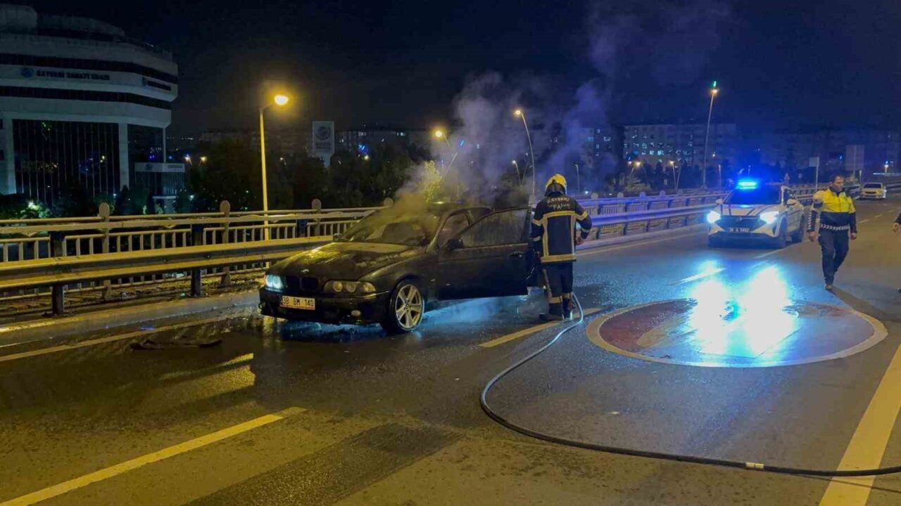 Olay, Mevlana Mahallesi’nde yer alan Mustafa Kemal Paşa Bulvarı üzerindeki üst geçitte meydana geldi. Edinilen bilgilere göre, E.Ö. idaresindeki 38 BM 140 plakalı araç, seyir halindeyken motor kısmından dumanlar çıkmaya başladı. Durumu fark eden sürücü, otomobili hemen durdurarak indirdi. Ancak kısa bir süre içinde dumanlar yerini alevlere bıraktı.