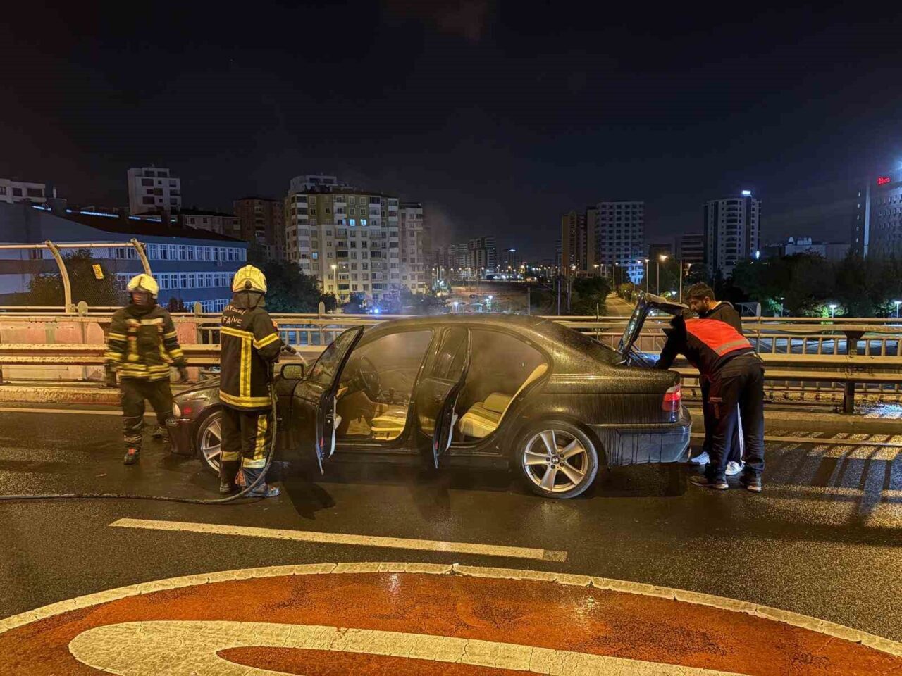 Kayseri’nin Kocasinan ilçesindeki bir üst geçitte meydana gelen otomobil yangını, itfaiye ekiplerinin hızlı müdahalesi sayesinde kısa sürede kontrol altına alındı.