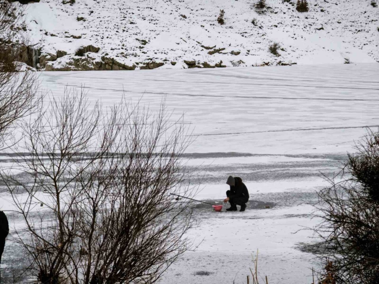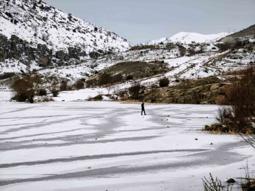 KONYA (İHA) – Konya’da Bulumya Göleti’nin yüzeyi soğuk hava nedeniyle tamamen buz tuttu.