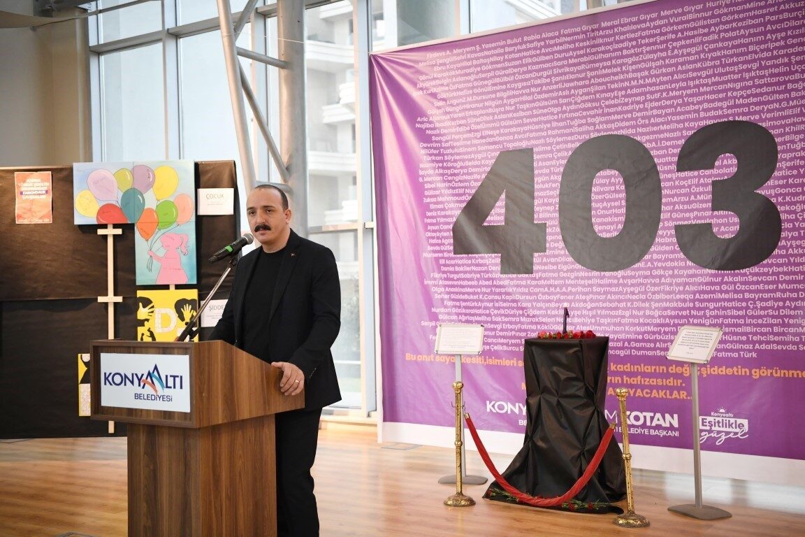 Sergi açılışında konuşan Cem Kotan, “Bu organizasyon, personelimizin özverili çalışmaları sonucunda ortaya çıktı. İçinde bulunduğumuz bu gün, toplumda kadına yönelik şiddeti önlemek adına bir adım atmamıza vesile olacaktır. Kurum içindeki eğitimlerimizin bu tür sanatsal çalışmalara dönüşmesi bizi mutlu ediyor. Tüm emeği geçen çalışma arkadaşlarıma teşekkür ediyorum” dedi. Konyaaltı Belediyesi’nin şiddetin her türlüsüne karşı durduğunu belirten Kotan, “Bu bağlamda hem kurumsal hem de toplumsal farkındalığı artırmak için eğitim faaliyetlerimizi sürdüreceğiz. Üzerinde durmak istediğimiz önemli bir konu, kadına yönelik şiddet. Son günlerde kaydedilen veriler bizleri oldukça üzüyor. Bu yüzden, eğitim çalışmalarına devam etmek zorundayız” şeklinde konuştu.
