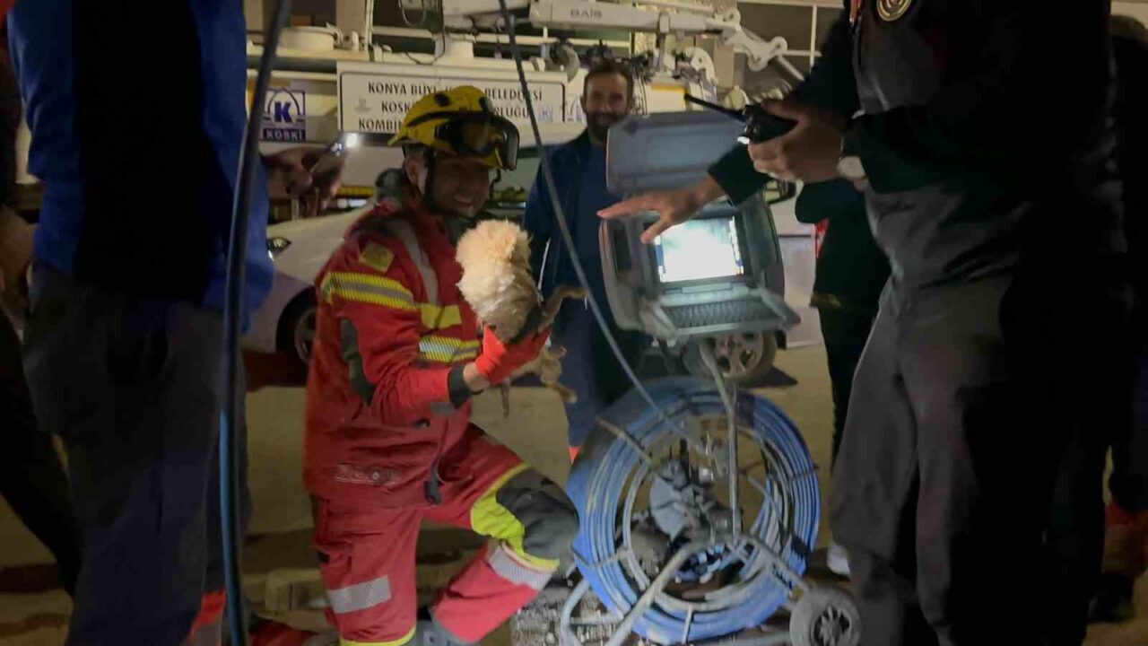Şehir merkezinin Karatay ilçesinde bulunan Fevzi Çakmak Mahallesi’ndeki Galericiler Sitesi’nde, “Sütlaç” isimli köpeğin kaybolduğu bilgisi üzerine yerel bir galerici esnafı, durumu yetkililere bildirdi. İhbardan hemen sonra, Konya Büyükşehir Belediyesi İtfaiye Dairesi Başkanlığı ile KOSKİ Genel Müdürlüğü ekipleri olay yerine yönlendirildi. Ekipler, köpeğin bulunduğu yeri belirlemek amacıyla 20 metre uzunluğundaki yılan kamera ile tarama yaptı.