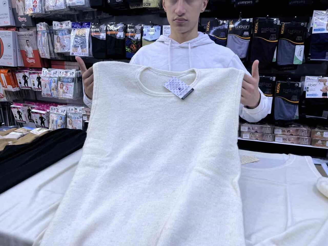 İÇLİK SATIŞI YAPAN VELİ BORA, “YENİ YENİ MÜŞTERİLERİMİZDEN KIŞLIK ÜRÜNLERLE İLGİLİ TALEPLER BULUNMAKTADIR. KIŞ SEZONUNDA DAHA ÇOK ÜŞÜYEN VATANDAŞLARIMIZ YA DA RAHATSIZ, HASTA OLAN VATANDAŞLARIMIZ BU GÜNLERDE TALEP ETMEYE BAŞLADILAR. MÜŞTERİLERİMİZ KENDİLERİNE ÖZEL İSTEMİŞ OLDUKLARI TALEPLERİNE GÖRE İNCE, KALIN VEYA TERMAL, YÜN ŞEKLİNDE OLAN İÇERİKLERİ GELİP BİZDEN TEMİN EDEBİLMEKTEDİRLER. YÜN ASLINDA DAHA ÇOK TERCİH EDİLMESİ GEREKİYOR” DEDİ.