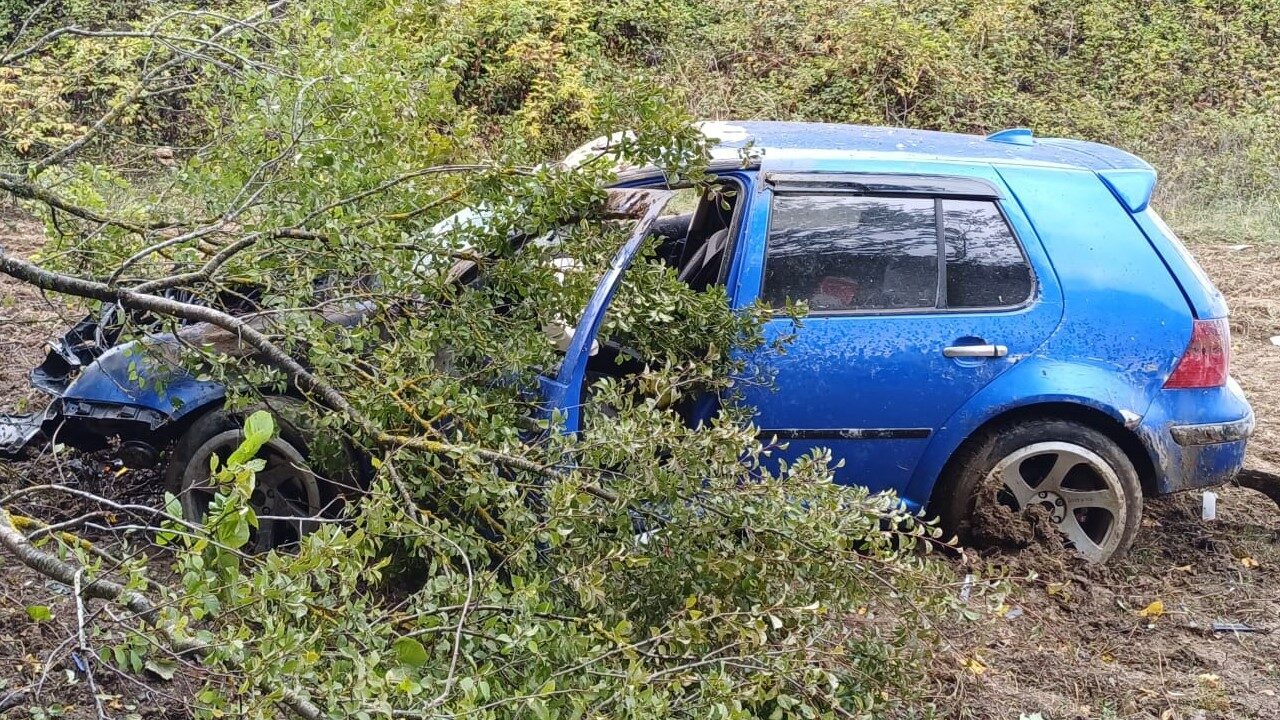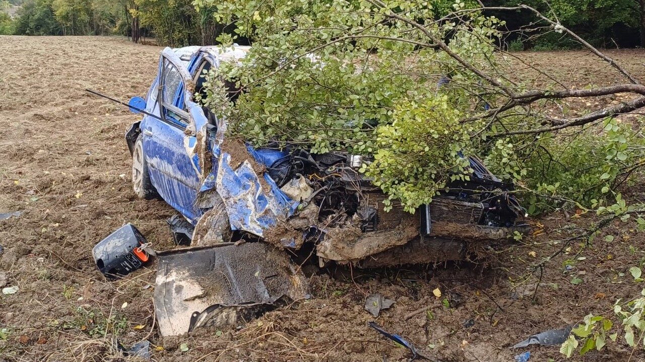 BOLU’DA YAĞMUR NEDENİYLE KAYGANLAŞAN YOLDA KONTROLDEN ÇIKAN OTOMOBİL TARLAYA UÇTU. KAZADA 1 KİŞİ YARALANDI.