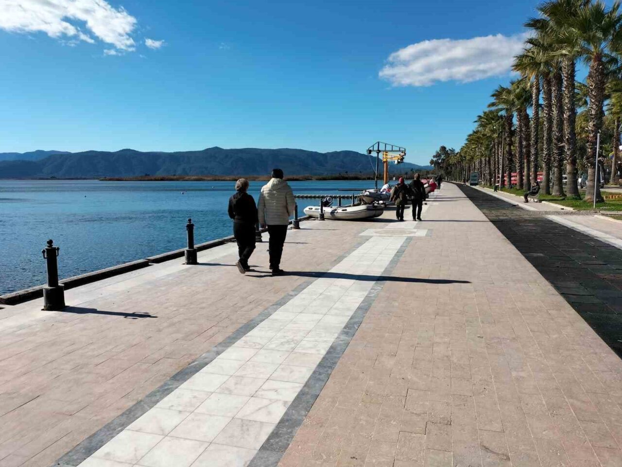 Yılın ilk gününde hava sıcaklığının 9-12 derece arasında seyrettiği Köyceğiz’de, rüzgarlı havaya rağmen vatandaşlar güneşli havanın tadını çıkardı. Yılbaşı tatilini fırsat bilen yerli ve yabancı ziyaretçiler, ilçenin en gözde noktalarından biri olan Atatürk Kordonu’nda yoğunluk oluşturdu. Soğuk havaya karşı mont ve ceketleriyle önlem alan vatandaşlar, Köyceğiz Gölü manzarası eşliğinde yürüyüş gerçekleştirdi. Bazı ziyaretçiler göl kenarında zaman geçirirken, diğerleri ise kafe ve işletmelerde oturarak yeni yılın ilk gününün keyfini sürdü.