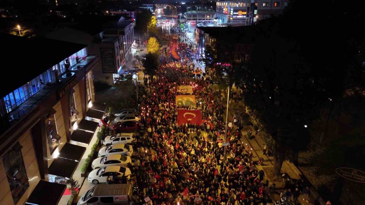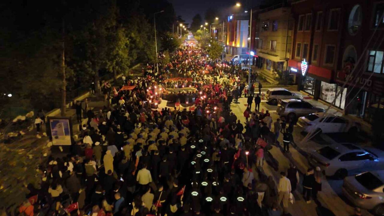 Muğla’nın Köyceğiz ilçesinde 29 Ekim Cumhuriyet Bayramı etkinlikleri kapsamında yapılan bayrak yürüyüşü, ilkokul, ortaokul, lise öğrencileri ve pek çok vatandaşın katılımıyla büyük bir coşkuyla gerçekleşti.