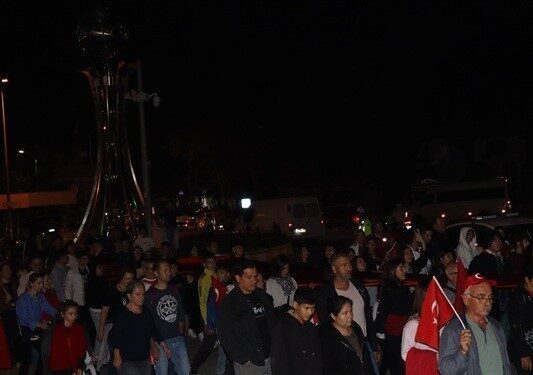29 Ekim günü saat 19.00’da Köyceğiz Gençlik Merkezi önünden hareket eden yürüyüş, Atatürk Kordonu Fuar Alanı’nda sona erdi. Onlarca öğrenci ve vatandaş, 102 metrelik dev Türk Bayrağı ile hazırlanan Cumhuriyet kortejinde bir araya geldi. Kortej, yerel halk ve otomobillerdeki sürücülerin marşlara ve bayraklara eşlik etmesiyle daha da renkli bir hale geldi. Cumhuriyetin 102. yılına özel düzenlenen etkinlikte, bayrağın uzunluğu büyük bir ilgi topladı. Kortejde yer alan öğrenciler ve katılımcılar, bu tür organizasyonların bir parçası olmaktan mutluluk duyduklarını dile getirdi. Bando takımı eşliğinde, Köyceğiz’de herkes ortak bir ruhla Cumhuriyet’in 102. yılını kutladı.