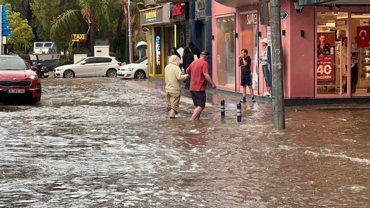 Meteoroloji tarafından yapılan uyarının ardından, Fethiye’de başlayan yağmur, yaklaşık bir saat boyunca etkili oldu. Şiddetli yağış sonrasında ilçe merkezi, adeta Venedik manzarasına büründü. Su seviyesinin hızla yükselmesi, yolda seyreden araçların zor anlar yaşamasına neden oldu ve trafik akışı büyük ölçüde durma noktasına geldi.