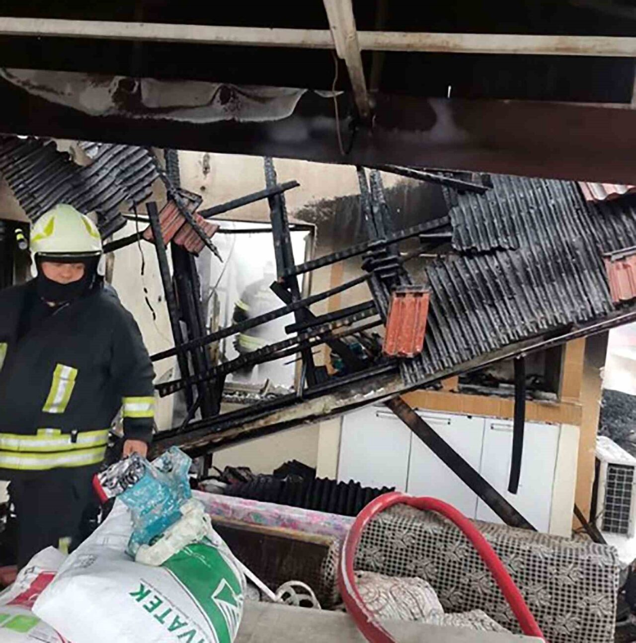 Yangın sonrası evin içindeki eşyaların tamamı yandı.