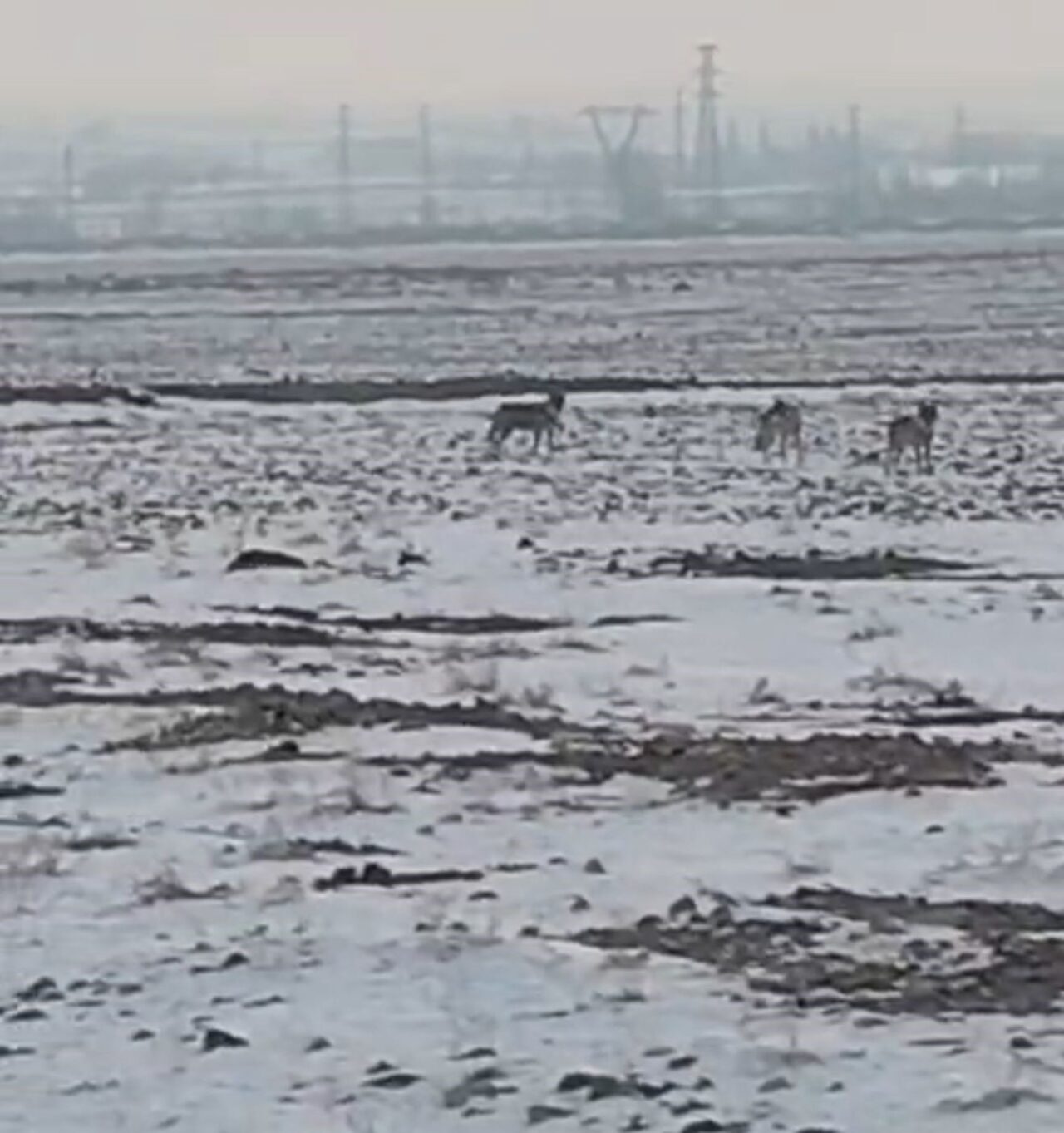 Soğuk hava şartlarının etkisini artırmasıyla birlikte dağlık alanlarda yiyecek bulmakta zorlanan kurtlar, Iğdır Ovası’na indi.