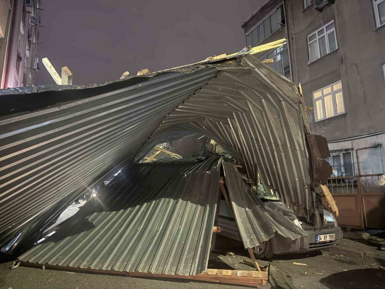 Küçükçekmece’de şiddetli rüzgar binanın çatısını uçurdu
