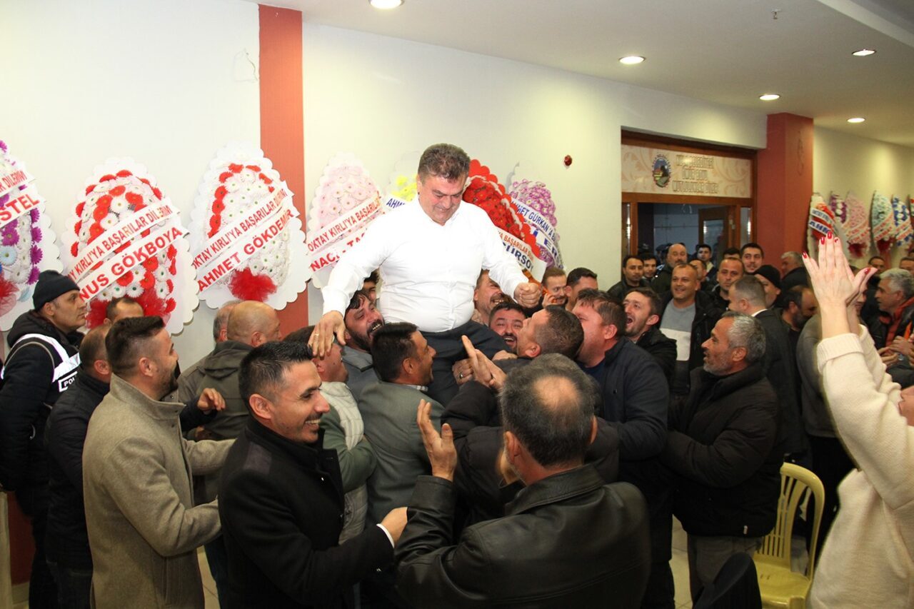 Seçim sonuçlarının açıklanmasının ardından Oktay Kırlı ve ekibi büyük bir mutluluk yaşarken, oyun havasıyla seçim sonucunu kutladı.