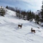 Yoğun kar yağışı sonrasında sessizliğe bürünen yaylada ortaya çıkan karacalar, doğal yaşamın kış aylarındaki güzelliklerini gözler önüne serdi. Kar örtüsü üzerinde besin arayan karacaların, zaman zaman kara bata çıka ilerlediği ve bazı karacaların ise dron kamerasını merakla takip ettiği anlar görüntülere yansıdı.