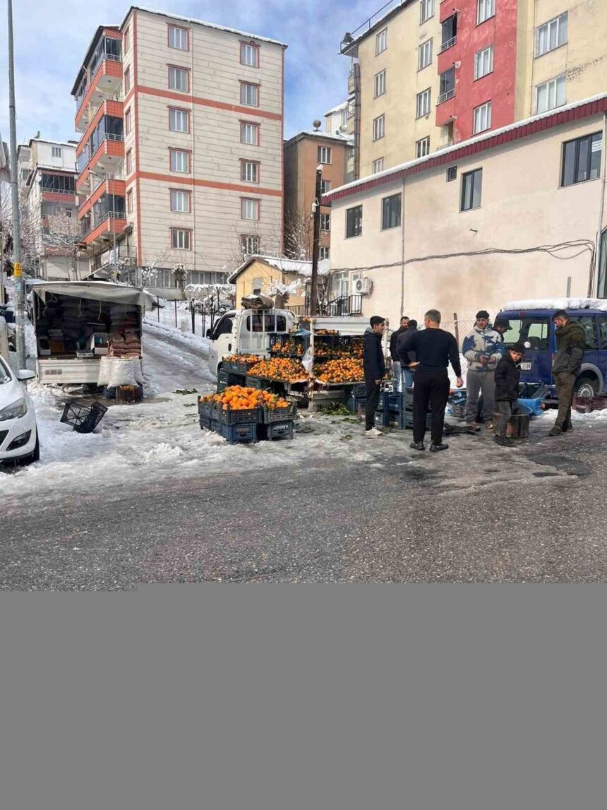 Zorlu hava koşullarına rağmen ekmek parası için pazar yerine gelen az sayıda esnaf ise tezgah açmak yerine kamyonet kasalarından satış yapmaya çalıştı. Özellikle narenciye ve kışlık sebze getiren esnaf, müşteri beklerken dondurucu soğuktan korunmak için teneke varillerin içinde ateş yakarak ısınmaya çalıştı.