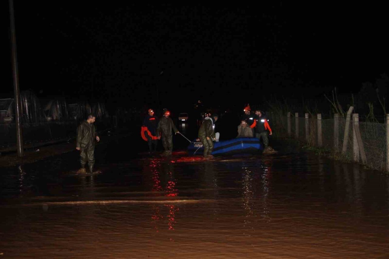 Antalya’nın Kumluca ilçesinde meydana gelen sağanak yağış nedeniyle tarım alanları etkilendi, seralarda çalışanların evlerini su bastı. Araçlarıyla suda mahsur kalan bir sürücü ise AFAD ekipleri tarafından bot yardımıyla kurtarıldı.
