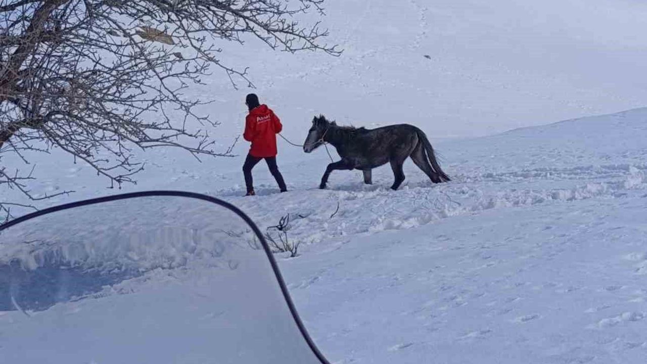 Bingöl'de dağda karlar arasında mahsur kalan ve kurt saldırısına uğrayarak yaralanan at, AKUT Bingöl ekibi tarafından kurtarıldı.