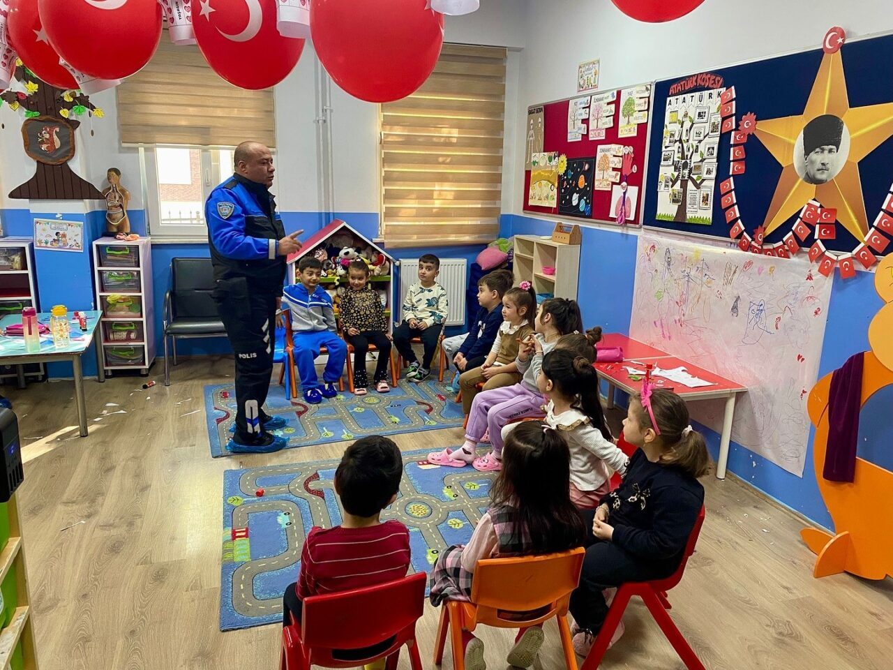 Güvenli oyun alanları hakkında yapılan bilgilendirmeler, trafik kuralları ve acil durumlarda 112 Acil Çağrı Merkezi’nin nasıl arandığı konularında da çocuklara yönelik detaylı açıklamalar yapıldı.