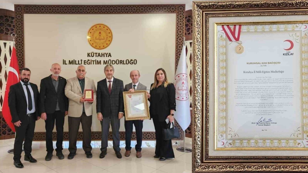 KÜTAHYA MİLLİ EĞİTİM MÜDÜRLÜĞÜNE KIZILAY’DAN “ALTIN KURUMSAL KAN BAĞIŞÇISI” ÖDÜLÜ