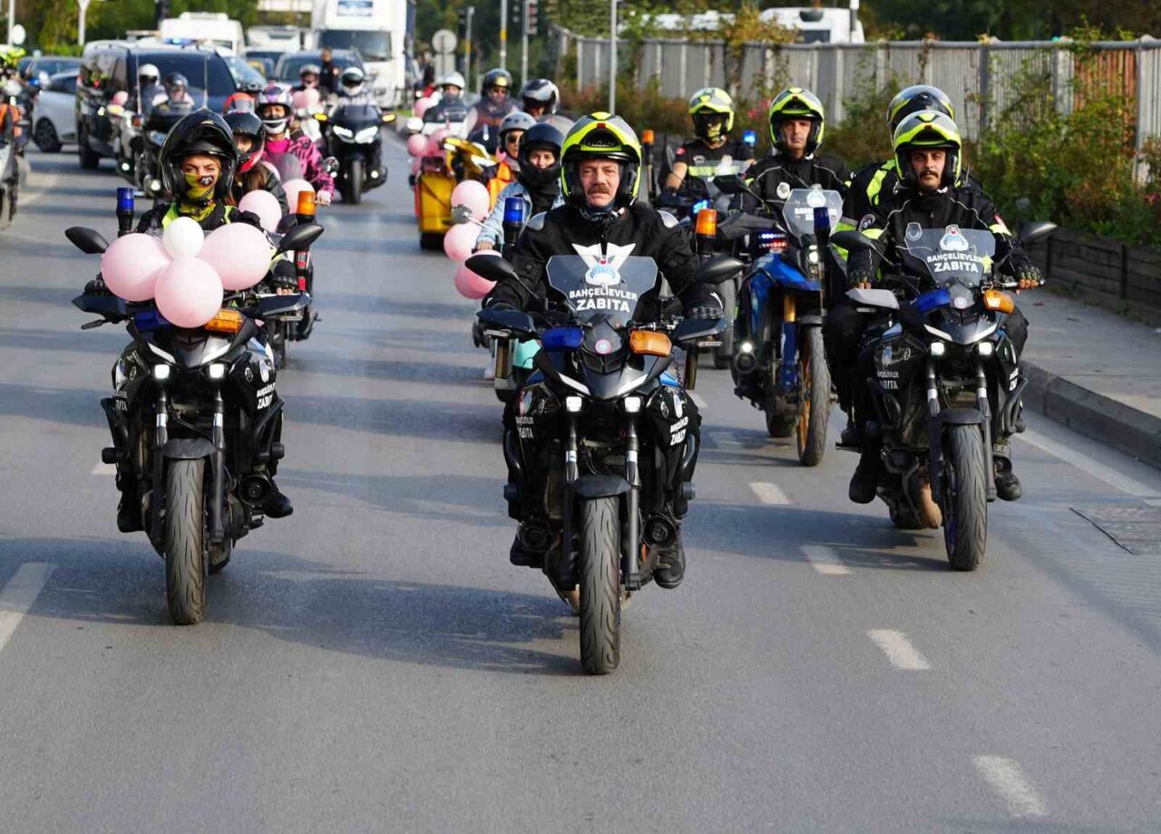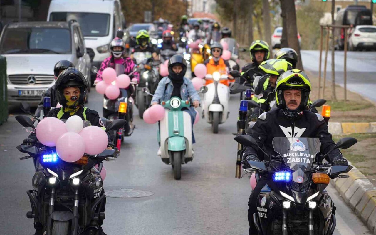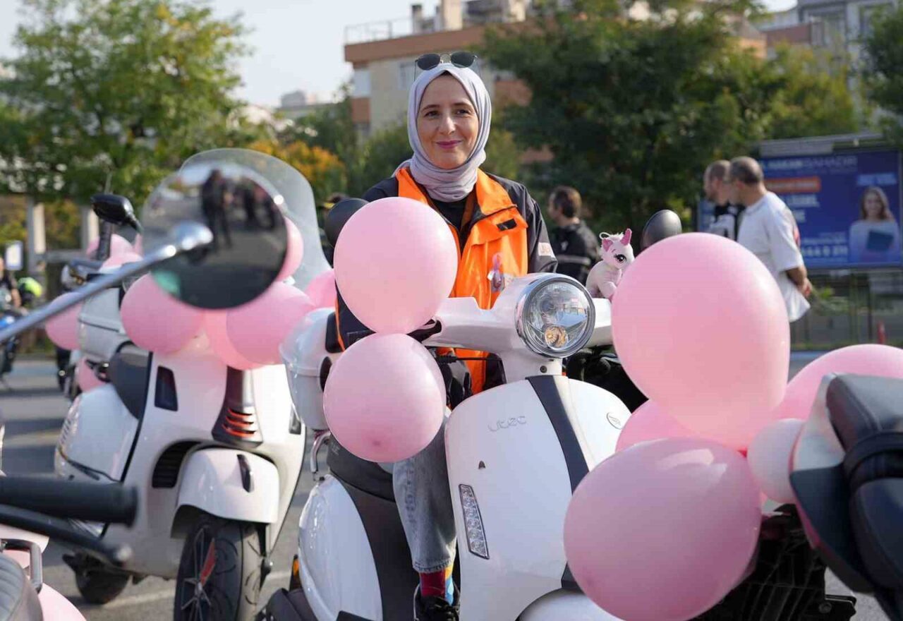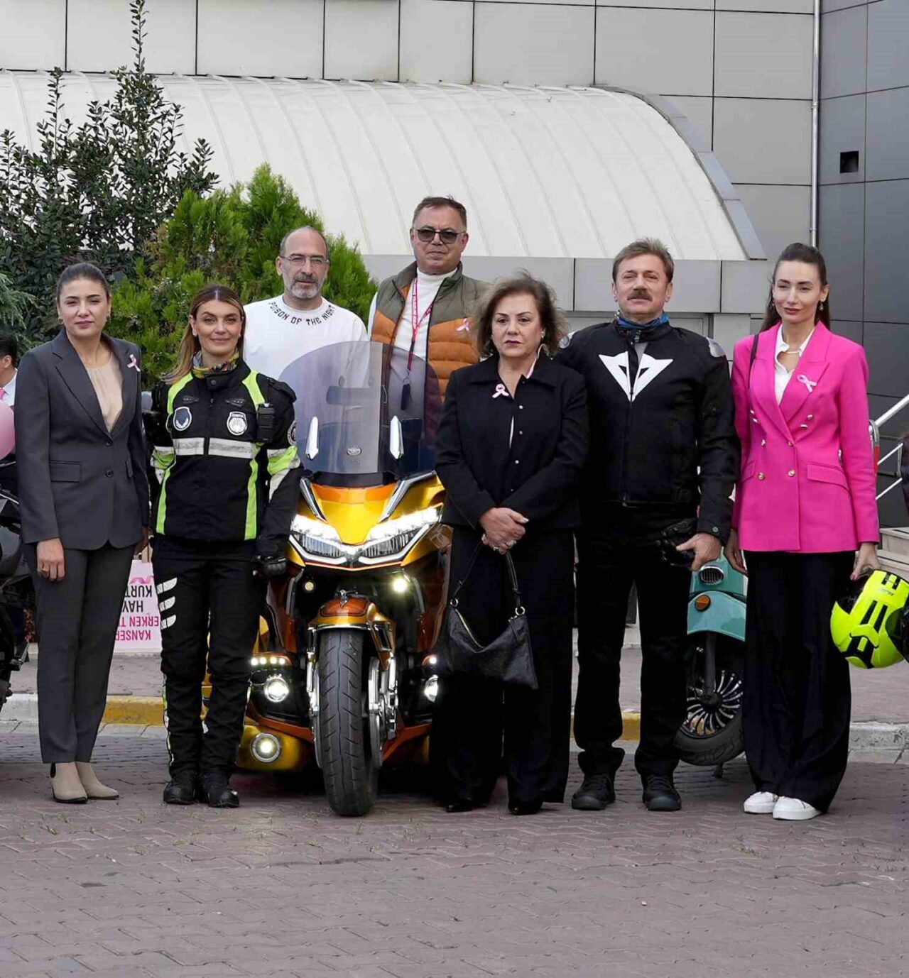 BAHÇELİEVLER BELEDİYE BAŞKANI DR. HAKAN BAHADIR, 1-31 EKİM MEME KANSERİ BİLİNÇLENDİRME VE FARKINDALIK AYI KAPSAMINDA DÜZENLENEN ANLAMLI ETKİNLİKTE MOTOSİKLETE BİNEREK, MEME KANSERİNE DİKKAT ÇEKTİ.