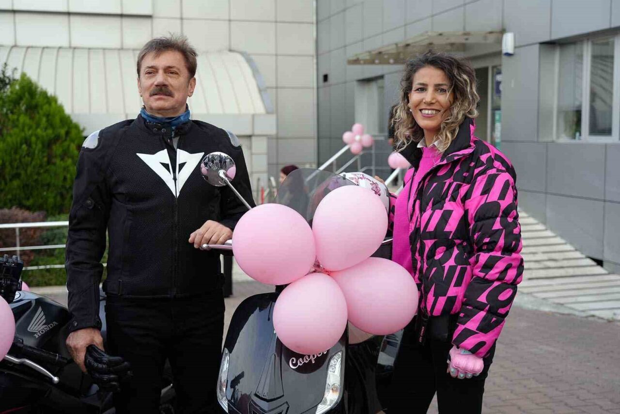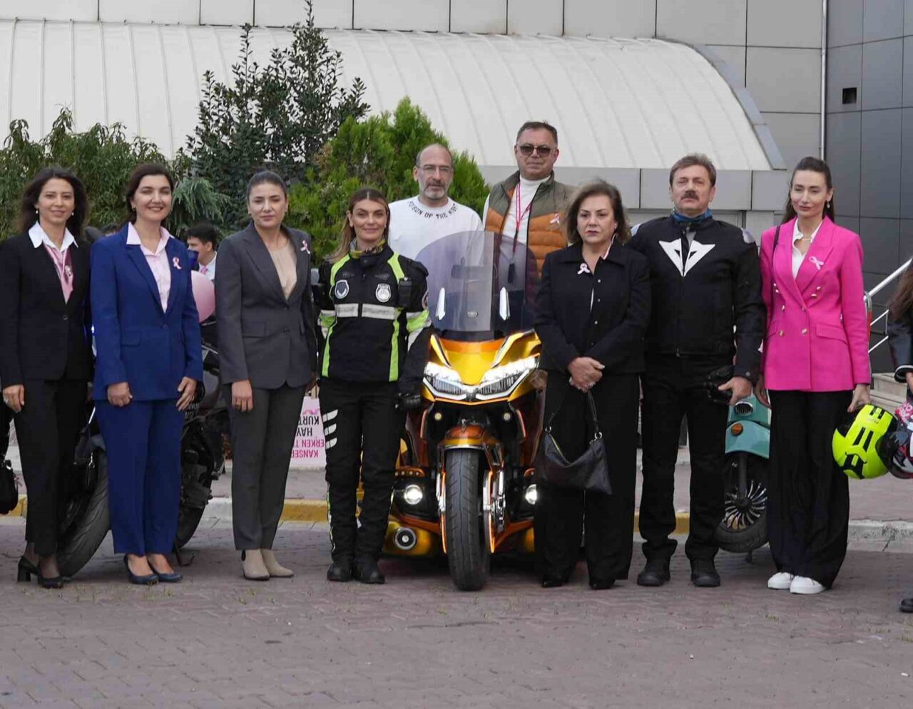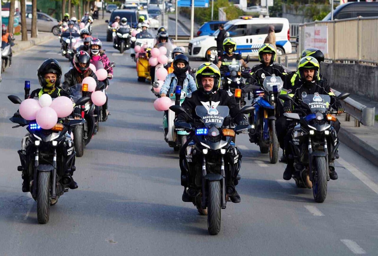 BAHÇELİEVLER BELEDİYE BAŞKANI DR. HAKAN BAHADIR, 1-31 EKİM MEME KANSERİ BİLİNÇLENDİRME VE FARKINDALIK AYI KAPSAMINDA DÜZENLENEN ANLAMLI ETKİNLİKTE MOTOSİKLETE BİNEREK, MEME KANSERİNE DİKKAT ÇEKTİ.