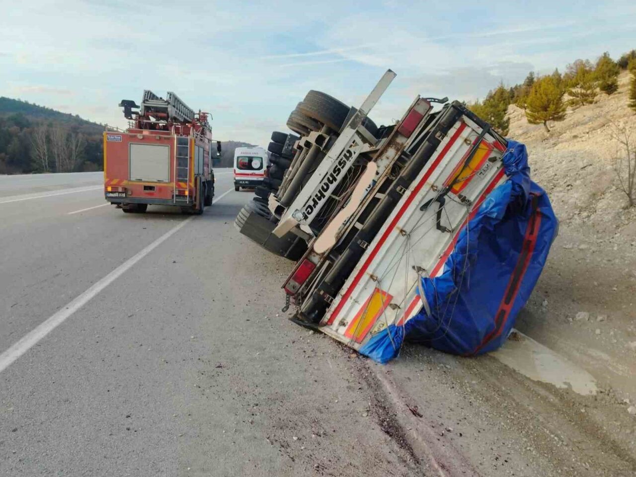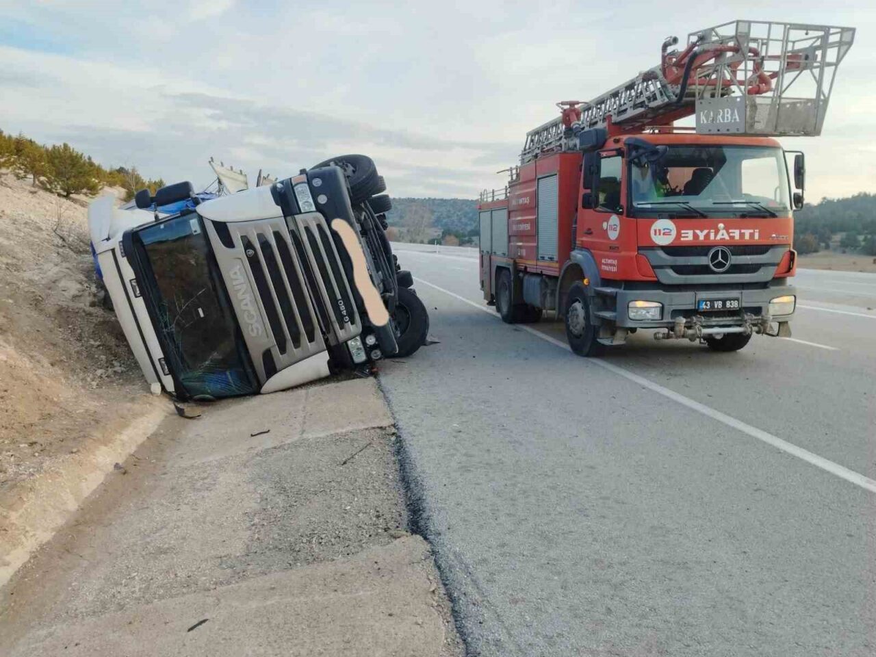 Kütahya’nın Altıntaş ilçesinde meydana gelen tır kazasında sürücü yaralandı.