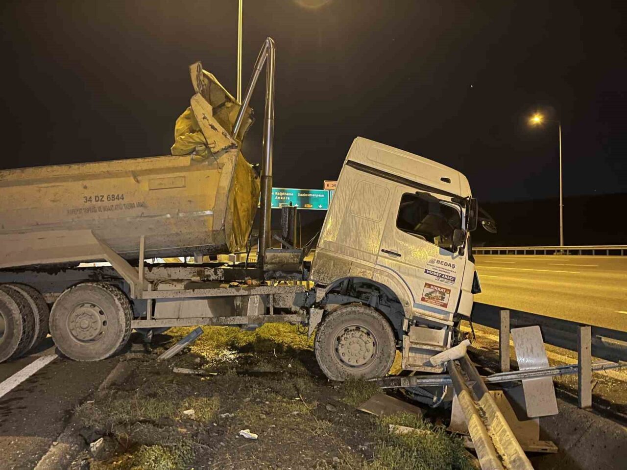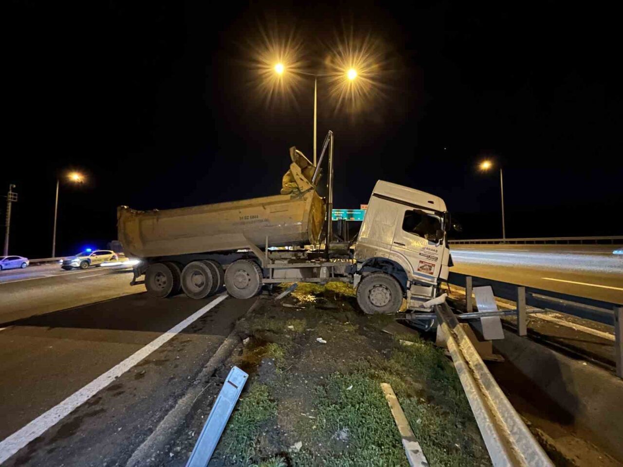 Kaza, akşam saatlerinde Kuzey Marmara Otoyolu Başakşehir Mevkii’nde gerçekleşti. İddiaya göre, B.T. kontrolündeki 34 DZ 6844 plakalı hafriyat kamyonunun dorsesi yol üzerindeki serbest geçiş sistemi (SGS) direğine vurdu. Kaza sonrası direksiyon hakimiyetini kaybeden sürücü, yolun sol şeridine geçerek bariyere çarptı. İhbar üzerine olay yerine itfaiye, polis ve sağlık ekipleri sevk edildi. Araç sürücüsü, sağlık ekiplerinin ilk müdahalesinin ardından ambulansla hastaneye kaldırıldı. Sürücünün durumunun ağır olduğu bildirilirken, polis ekipleri tarafından yolda güvenlik önlemleri alındı. Hafriyat kamyonu, yolun dışına alınarak götürüldü.