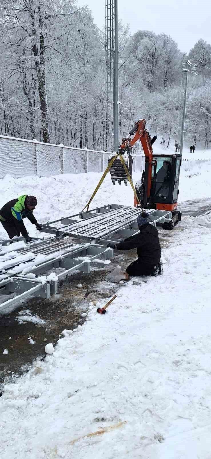 Kocaeli Büyükşehir Belediyesi, Kuzuyayla Tabiat Parkı’ndaki kızak pistine vatandaşların ulaşımını kolaylaştırma amacıyla kapalı yürüyen bant sistemi inşa ediyor. Kış sezonu hazırlıkları çerçevesinde hayata geçirilecek proje ile kayak severlerin piste erişiminde konforun artırılması hedefleniyor. 96 metre uzunluğunda ve 2,5 metre genişliğinde yapılan yürüyen bant sistemi çalışmaları dahilinde, kızak pisti alanının zemini yüzde 12 eğimli olacak şekilde kazı çalışmaları yapıldı ve yürüyüş bandı altındaki zemin iyileştirme çalışmaları tamamlandı. Ayrıca, 3,50 metre 2,50 metre ile 4,00 metre 2,90 metre boyutlarındaki istasyon temel betonlarının dökümü gerçekleştirildi.