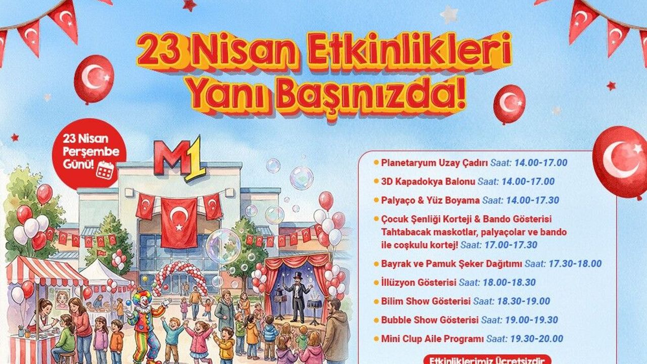 Yapılan açıklamaya göre, 23 Nisan Perşembe günü gerçekleşecek etkinlikler arasında; Planetaryum Uzay Çadırı ve 3D Kapadokya Balonu deneyimleriyle çocuklar keşif dolu bir yolculuğa çıkacak. Ayrıca, palyaço gösterileri ve yüz boyama etkinlikleriyle eğlence doruk noktasına ulaşacak. Günün ilerleyen saatlerinde düzenlenecek Çocuk Şenliği Korteji ve bando gösterisi, bayram coşkusunu tüm AVM'ye yayacak. Etkinlik programında ayrıca, bayrak ve pamuk şeker dağıtımı, illüzyon gösterisi, bilim şovu ve bubble show gibi birbirinden renkli aktiviteler de yer alıyor. Mini Club Aile Programı ile gün, ailelerin birlikte keyifli vakit geçireceği özel bir etkinlikle tamamlanacak. M1 Konya AVM'de, gün boyu sürecek tüm etkinlikler, ücretsiz olarak ziyaretçilerin katılımına açık olacak.