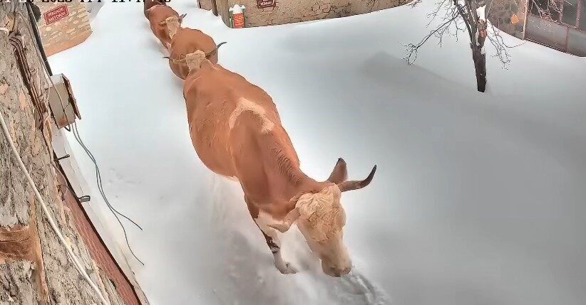 Kayıtlarda, hayvanların karla kaplı yollarda güçlükle hareket ettikleri gözlemleniyor.