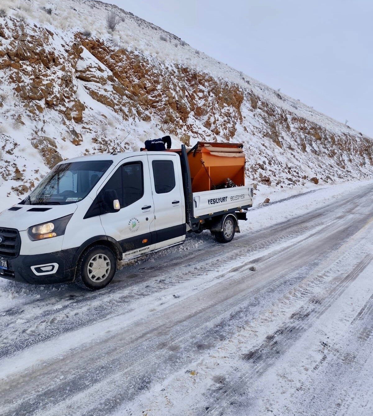 Yeşilyurt Belediyesi Fen İşleri Müdürlüğü, Park ve Bahçeler Müdürlüğü ile Temizlik İşleri Müdürlüğü ekiplerinden oluşturulan koordineli çalışma ağı kapsamında; ilçeye bağlı merkez ve kırsal bölgelerin tamamında kar küreme, yol açma ve tuzlama çalışmaları yoğunlaştırıldı. Ara caddelerin yanı sıra tali yollar, okul güzergâhları, sağlık kuruluşları çevresi ve toplu taşıma durakları da öncelikli bölgeler arasında yer aldı.