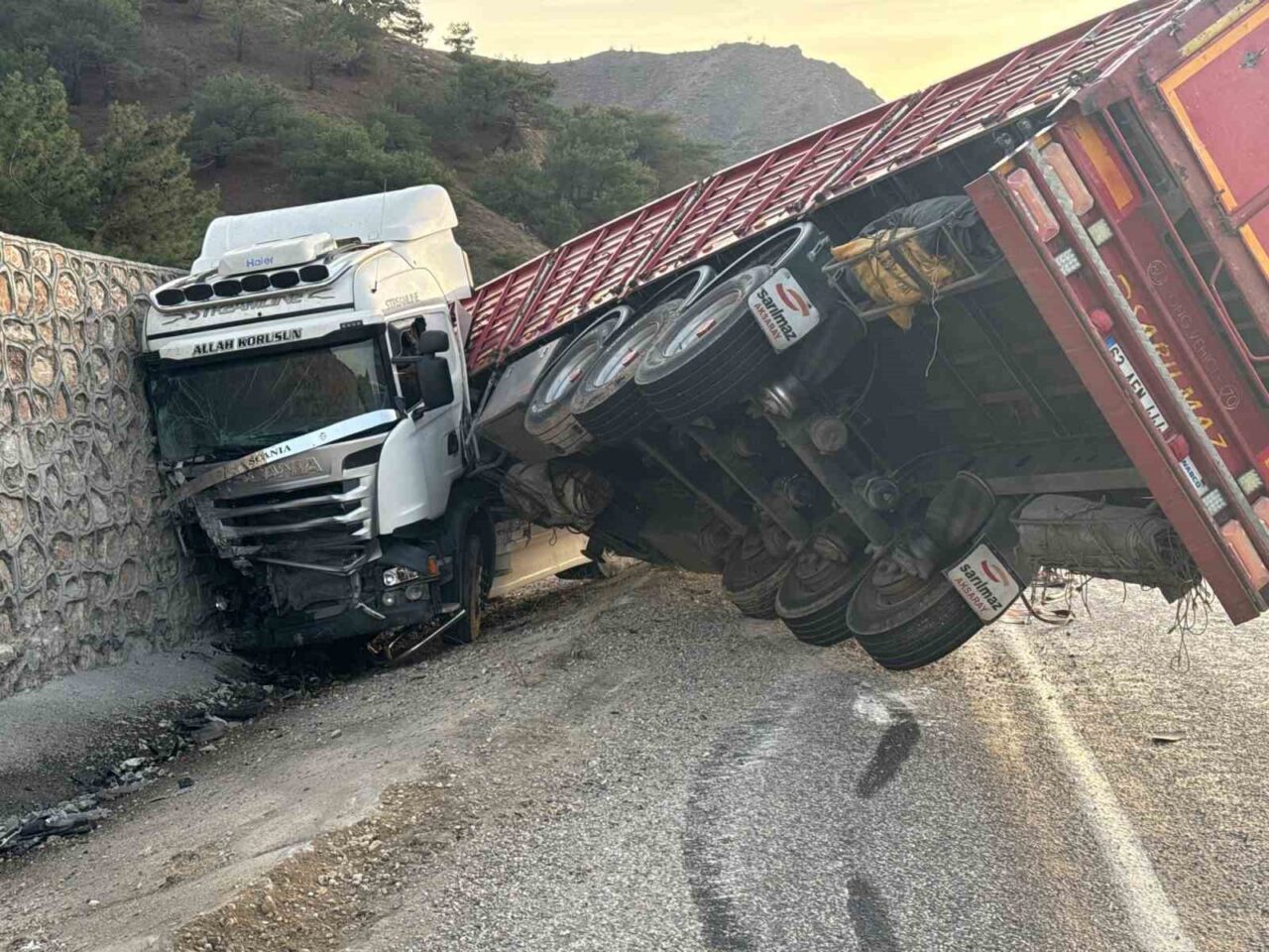 Malatya’nın Doğanşehir ilçesinde bir tır, sürücüsünün hakimiyetini kaybetmesiyle istinat duvarına çarptı. Bu talihsiz olay sonucunda bir kişi yaralandı.