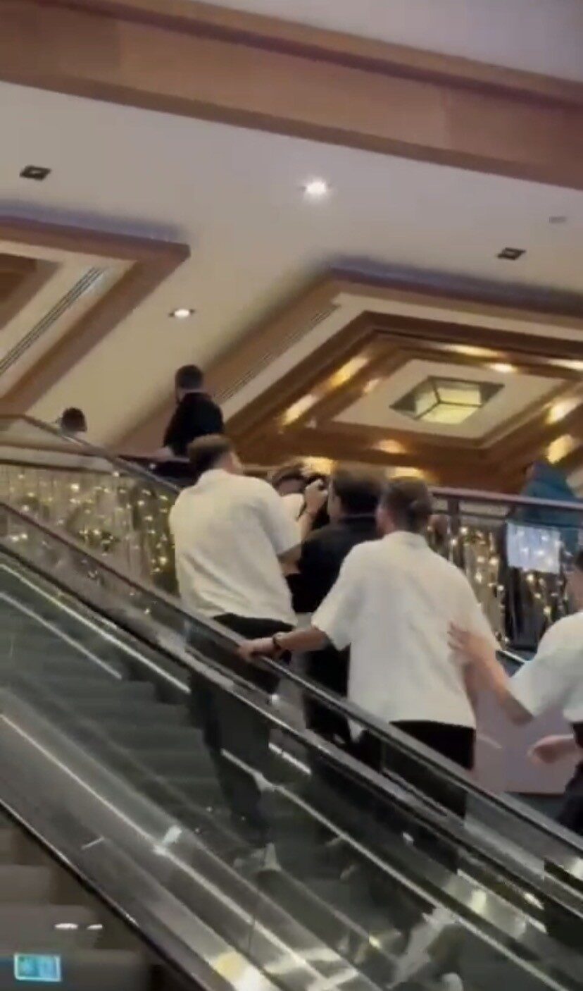 O esnada alışveriş merkezinde bulunan bir vatandaş, yaşananları cep telefonuyla kaydetmeyi başardı. Görüntülerde, saldırganın işletme çalışanları tarafından yürüyen merdivenlerden uzaklaştırıldığı ve taraflar arasında şiddetli bir kavga anları yer aldı.