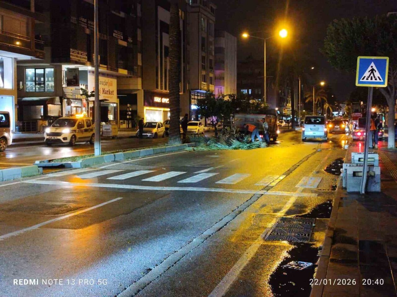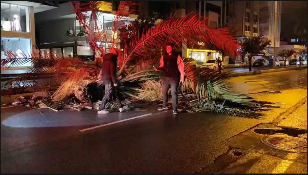 Trafik ekipleri yolda gerekli güvenlik önlemini alırken, trafik tek şeritten kontrollü olarak sağlandı. Park ve Bahçeler Müdürlüğü ekiplerinin yola savrulan palmiyeyi kesmek suretiyle kaldırmasının ardından caddede trafik akışı normale döndü. Fırtınayla birlikte zaman zaman yağmurun da şiddetini artırdığı gözlenirken, fırtınanın etkisini geç saatlere kadar sürdürmesi bekleniyor.