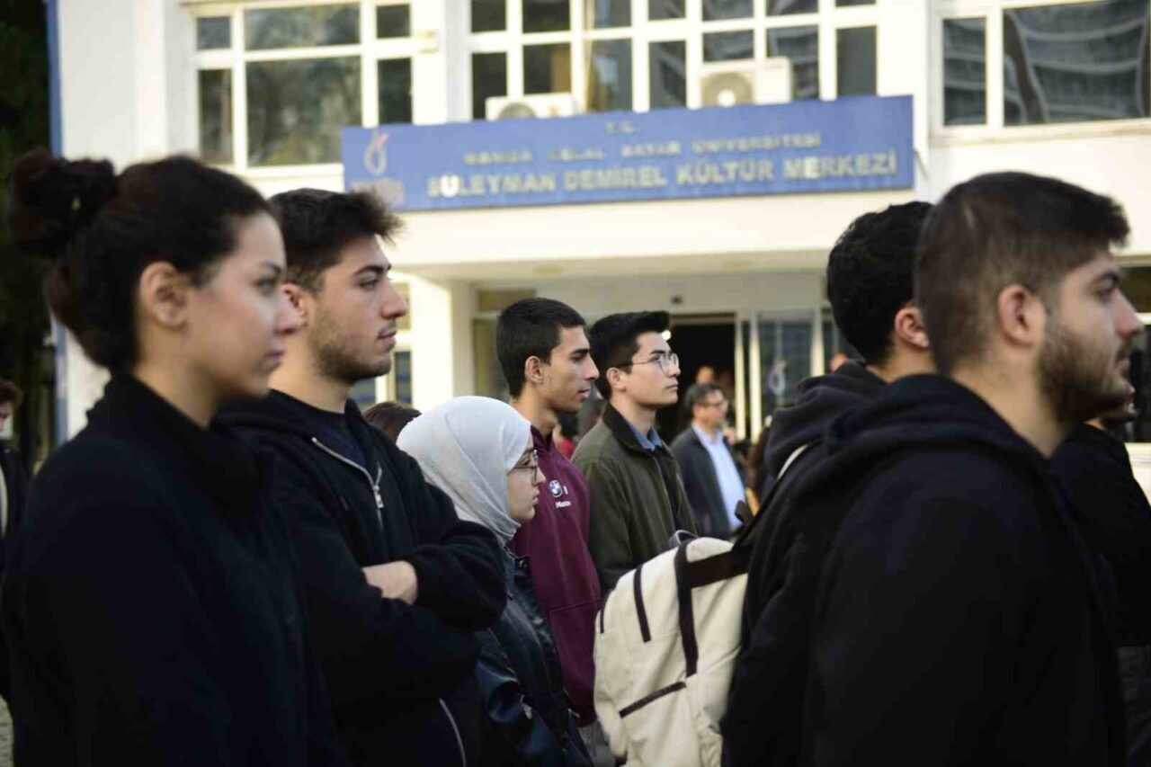 Manisa Celal Bayar Üniversitesi, Gazi Mustafa Kemal Atatürk’ün ebediyete intikalinin 87. yılını çeşitli etkinliklerle kutladı. Öğrenciler ve akademisyenlerin katılımıyla gerçekleştirilen anma törenlerinde saygı duruşu yapıldı ve İstiklal Marşı okunarak duygu dolu anlar yaşandı.