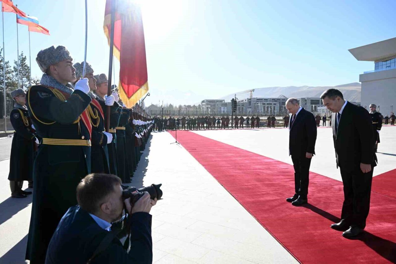 RUSYA DEVLET BAŞKANI VLADİMİR PUTİN RESMİ ZİYARET DÜZENLEDİĞİ KIRGIZİSTAN’IN BAŞKENTİ BİŞKEK’TE RESMİ TÖRENLE KARŞILANDI.