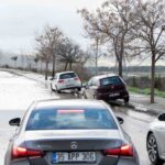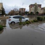 Manisa’da sağanak yağış yolları su bastı, araçlar kaldırımlarda ilerlemek zorunda kaldı.