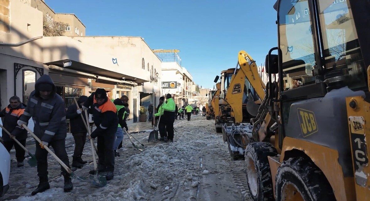 Mardin Büyükşehir Belediyesi, ilçe merkezleri ve kırsal mahallelerde yol açma, kar küreme, kaldırım ve çevre temizleme çalışmalarını kesintisiz olarak yürütüyor. Turistlerin yoğun olarak ziyaret ettiği Mardin 1. Cadde’de 130 personel, 9 çift kabin, 6 JCB ile yol ve kar temizleme faaliyetlerinin sürdüğünü belirten Büyükşehir Belediyesi Çevre Koruma ve Kontrol Daire Başkanı Halef Eraslan, “Tarihi şehrimize gelen vatandaşlarımızın mağdur olmamaları için gece gündüz 24 saat esasıyla çalışmalarımıza devam ediyoruz” ifadelerini kullandı.
