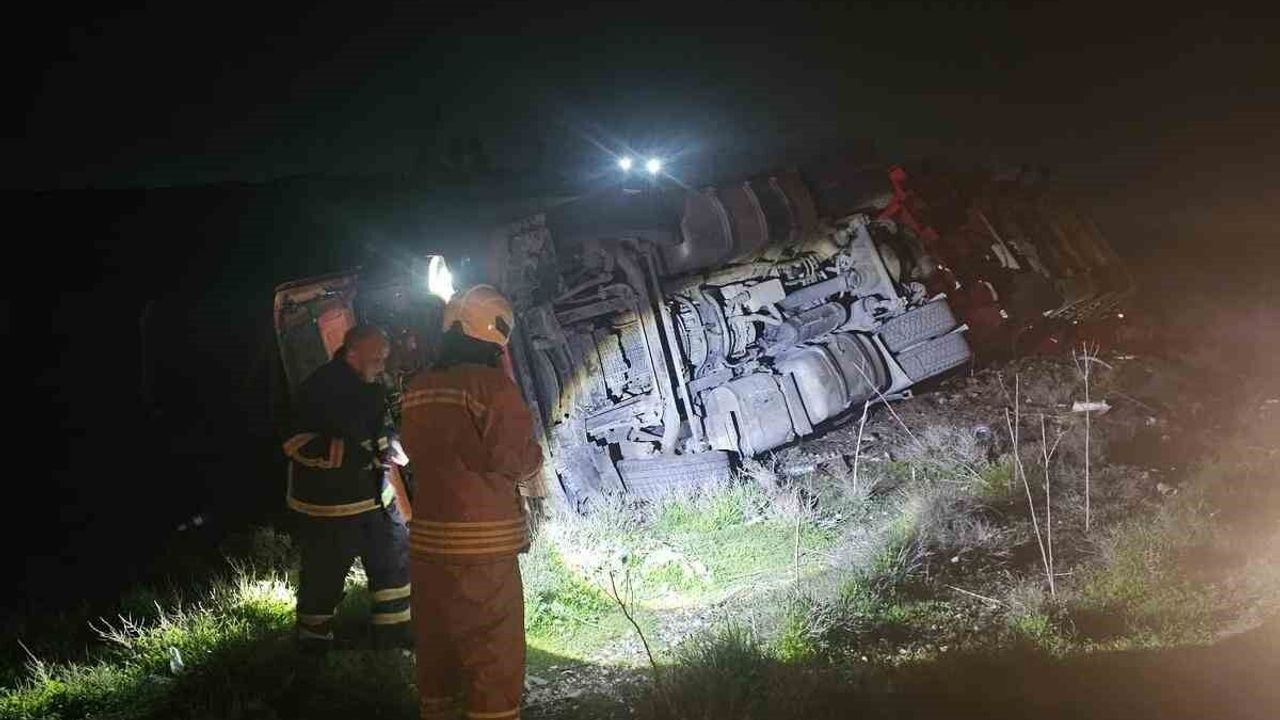 Mardin'in Nusaybin ilçesinde tırın devrilmesi sonucu meydana gelen kazada sürücü yaralandı.