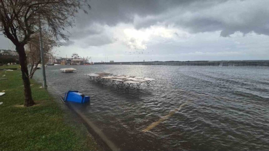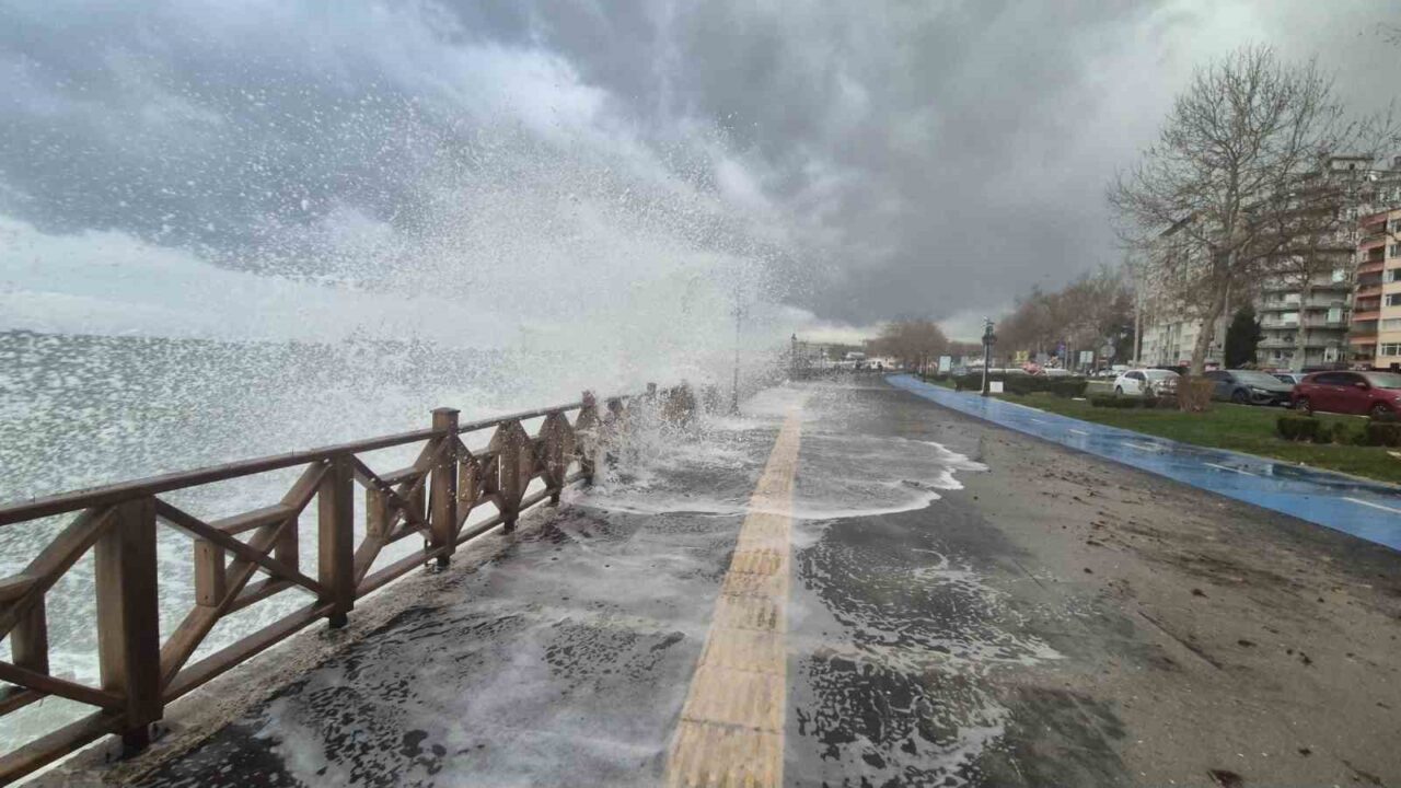 Marmara Denizi’nde etkili olan güçlü lodos nedeniyle Tekirdağ sahil şeridi sular altında kalırken, denizdeki olumsuz hava şartları günlük yaşamı olumsuz etkiledi.