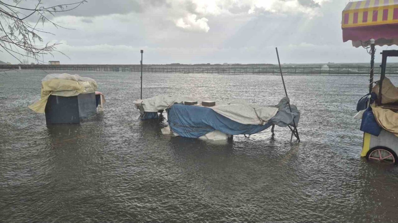Sahilin suyla kaplanması nedeniyle kıyıda bulunan seyyar satıcıların araçları ve tezgahları su içerisinde kaldı. Dalgaların şiddeti zaman zaman korkutucu boyutlara ulaşırken, denizin kenarındaki korkulukların bir kısmı dalgaların etkisiyle kırılarak kullanılamaz hale geldi. Vatandaşlara sahil kesiminden uzak durmaları hususunda uyarılar yapılırken, ekipler hasar tespit çalışması gerçekleştirdi.