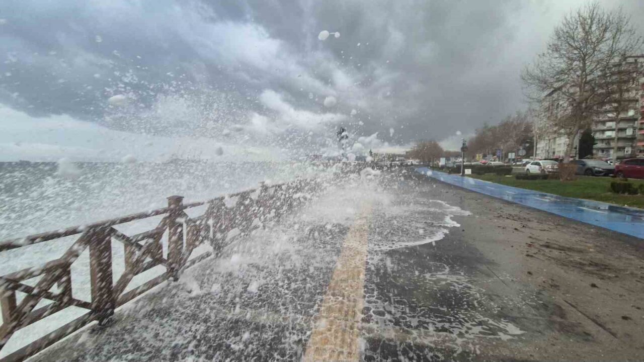 Marmara Denizi’nde etkili olan güçlü lodos nedeniyle Tekirdağ sahil şeridi sular altında kalırken, denizdeki olumsuz hava şartları günlük yaşamı olumsuz etkiledi.