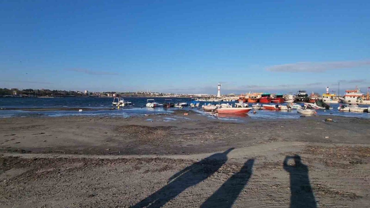 Tekirdağ’ın Marmaraereğlisi ilçesinde deniz seviyesindeki düşüş nedeniyle kıyı hattında belirgin bir çekilme meydana geldi.