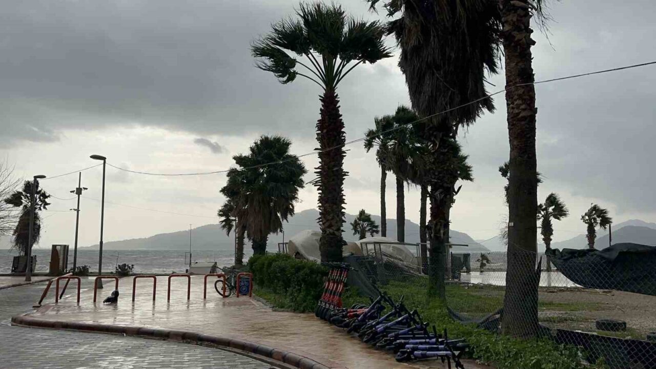 Muğla’nın Marmaris ilçesinde dün sabah saatlerinden itibaren etkili olan şiddetli fırtına hayatı olumsuz etkiliyor.