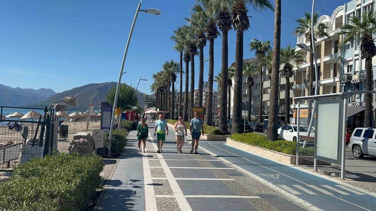 Türkiye’nin gözde turizm merkezlerinden biri olan Marmaris, turist akınına uğramış durumda. Hava sıcaklıkları 22 ile 27 derece arasında değişiyor. Marmaris Halk Plajı’nda denize giren tatilciler, deniz suyunun sıcak olduğunu belirtiyor. Rusya’dan gelen bir tatilci, “Marmaris’te hava oldukça güzel, denize girebileceğimiz için kendimizi gerçekten şanslı hissediyoruz.” şeklinde konuştu.